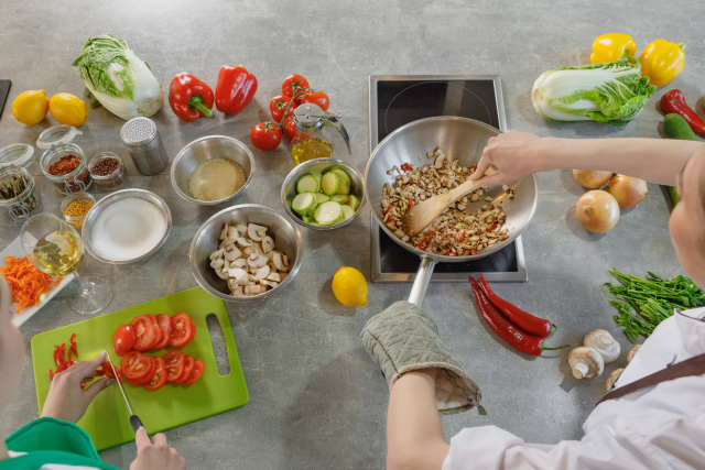 料理教室は、共同作業を通じて自然に会話が弾む環境が整っています。