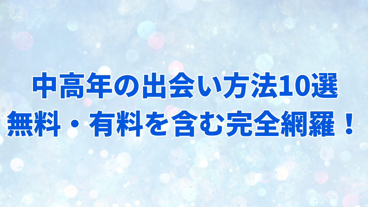 マッチングアプリから婚活パーティー、結婚相談所まで、中高年向けの出会い方を徹底解説します。年齢を言い訳にせず、今日から始める具体的な方法をご紹介します!